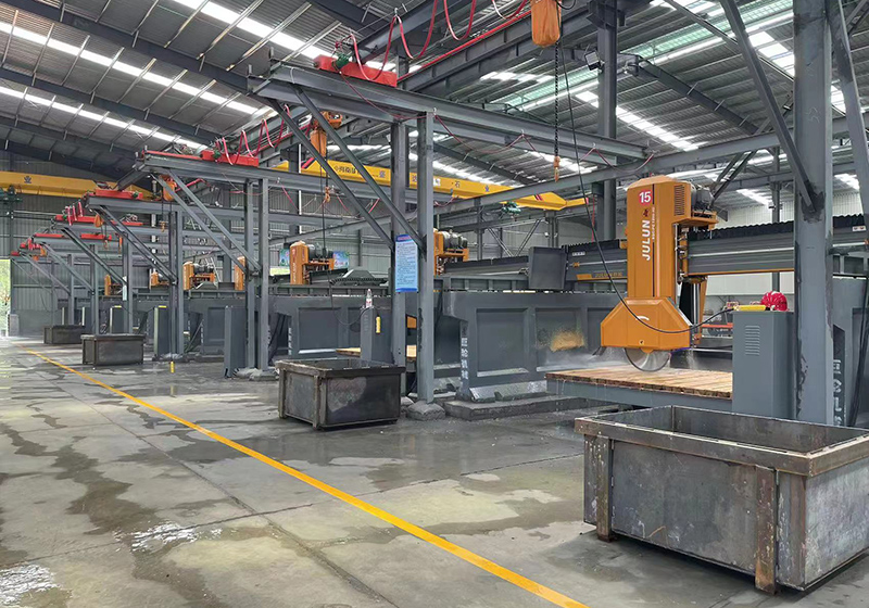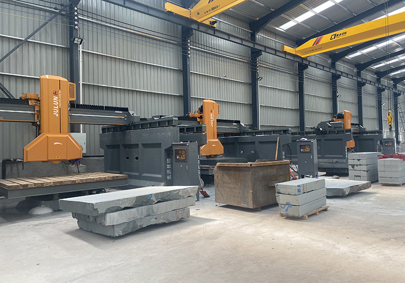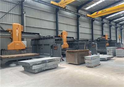 該機采用PLC可編程控制系統(tǒng)和人機操作界面,輔以高精度旋轉(zhuǎn)編碼器定位及紅外線標線器,左右行走及前后分片采用雙變頻器控制,可根據(jù)石材材質(zhì)進行調(diào)速,上下升降采用液壓升降,結(jié)合鍍鉻導柱+耐磨導套,配合間隙小,耐磨美觀,并在導套內(nèi)設(shè)計多層密封,防水防塵防漏油,提高使用壽命。工作臺采用超重型大規(guī)格型材焊接而成,承載重量更大,更穩(wěn)固耐用。關(guān)鍵部位均采用進口零部件,因而具有切割效率高、穩(wěn)定性高、操作簡便等優(yōu)點,特別適用于異形、墓碑、路沿石的切割。